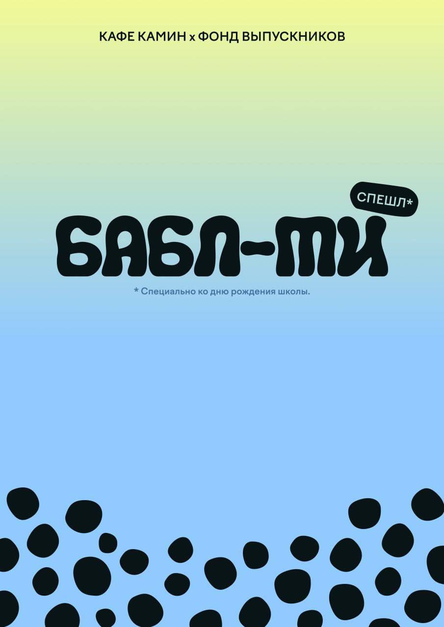 Вместе с кафе «Камин» мы подготовили спешл: бабл-ти. Над этим проектом работали два выпускника: Саша Маркарян провёл исследование, предложил сделать бабл-ти, а Соня Блудова подготовила постер.